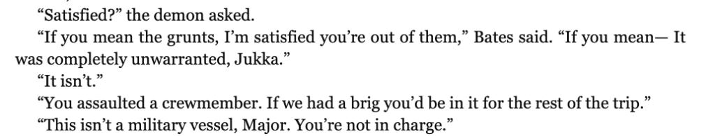 And it’s not just that. It’s the individual characters too! There’s a captain who was created artificially, a disputably-malicious ship AI backing him that controls corpses of dead crew members to do its will, a woman with physical enhancements…