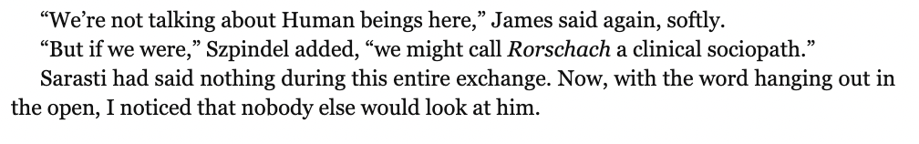 But that doesn’t shed any light on Sarasti’s ultimate reasons. The characters are too different.